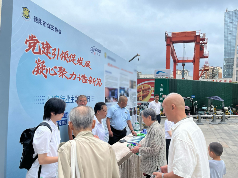 為深入貫徹落實公安部治安管理局、中國保安協會、德陽市公安局關于全國保安行業主題宣傳活動 “黨建引領促發展,凝心聚力譜新篇” 的工作部署,充分發揮黨建工作在保安行業發展中的引領作用。由德陽市公安局主辦、德陽市保安協會承辦的 “7.24” 保安行業主題宣傳活動于 2025 年 7 月 24 日在德陽市五洲廣場成功舉行。我公司作為德陽市保安協會副會長單位,積極參與此次宣傳活動。