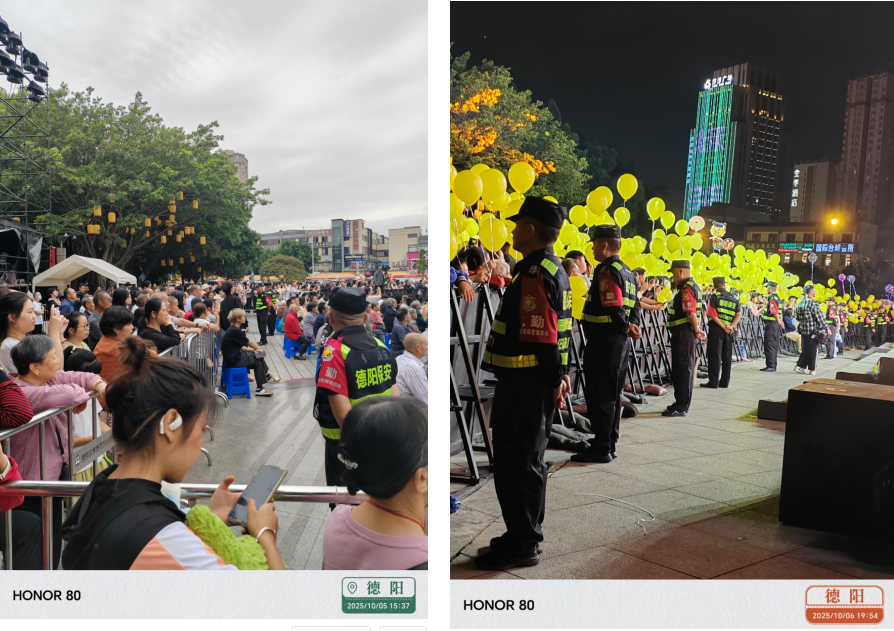 國慶期間,德陽市處處洋溢著喜慶、祥和的節日氛圍。從文廟廣場流光溢彩的國慶慶祝活動到溫情浪漫的央視中秋晚會,市民們在歡聲笑語中感受著國家富強與家庭團圓的幸福。德陽錦元保安有幸參與護航雙節盛典活動,他們以高度的責任感和專業的服務,為各項活動的順利舉行筑起了一道堅實的安全屏障,用實際行動詮釋了新時代保安公司的社會擔當。